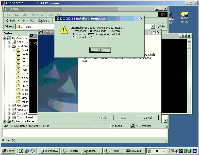 MSI © (70:98): Product: TEST – Internal error 2235. , RuntimeFlags, SELECT `Component`,`RuntimeFlags`,`KeyPath`, `Attributes` FROM `Component` WHERE `Component` = ?