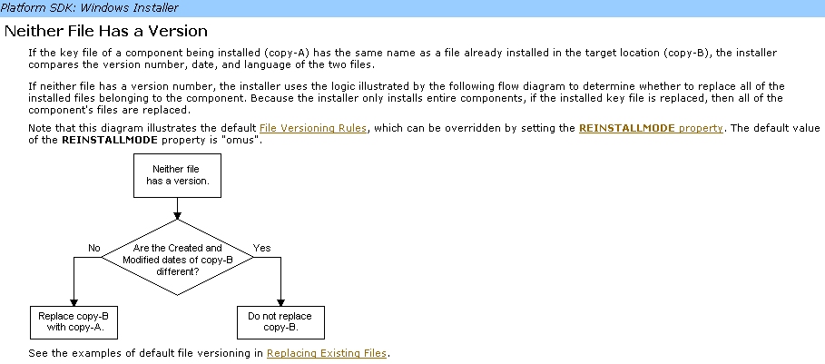Zum REINSTALLMODE: Da steht, das ältere Versionen überschrieben werden. Bezieht sich das auf das Änderungsdatum oder greifen da wieder die MSI Regeln (Erstellungsdatum, Änderungsdatum etc.)