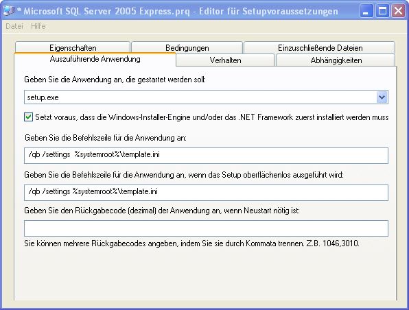 Ich installiere einen SQL 2005 Express Server im Skript mit folgendem Aufruf: