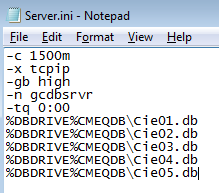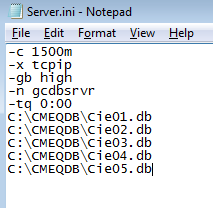 The server.ini file is to be used in conjuncture with SQL Anywhere 11 as a means of configuration file. There are 5 lines like that: C:\CMEQDB\Cie01.db (that ranges from Cie01.db to Cie05.db).
