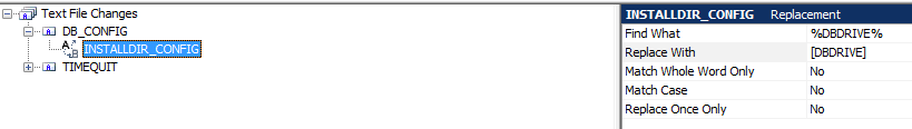 - Replacement set searches for %DBDRIVE% in [INSTALLDIR] *.ini and replaces it with [DBDRIVE]