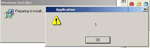 windows installer pops up the Dialog showing " 1:" message and abort. (see the attachment)