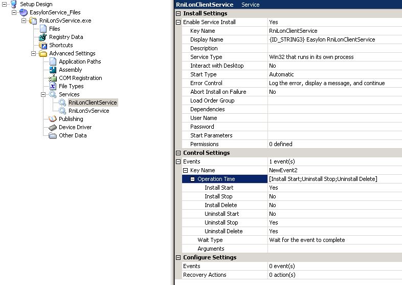 Das Problem ist nun genau umgekehrt, der Service wird nicht installiert, der Setup wartet auf Install Start, aber der Service wird gar nicht angelegt.