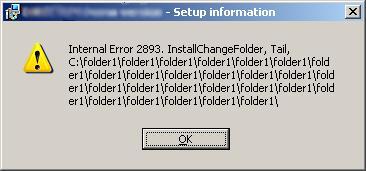 I faced with a such feature of Windows Installer - when I enter a long path to INSTALLDIR property appears 2893 Error (in attached file).