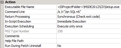 ein Setup installiert als Prerequisite zunächst den SQL-Server 2012 Express und erstellt danach per SQL-Script die Datenbank (Variante "6"). Das funktioniert prima - auch ohne die vollständige Programmoberfläche - mit folgendem Aufruf: setup.exe /s /v"/qn SQL=6"