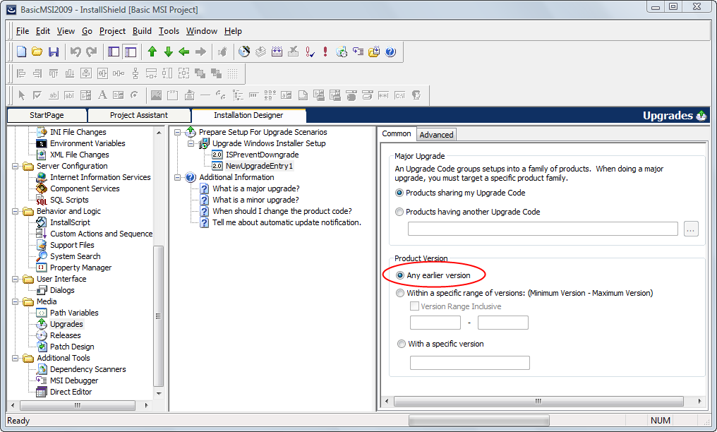 Ich habe ein Basic MSI mit dem ich Komponenten installieren möchte. Jetzt habe ich aber ein Problem. Wenn ich das MSI einmal ausgeführt habe und ein zweites Mal ausführe habe ich die Möglichkeit diese Dateien(dlls) der Komponenten zu überschreiben. Wenn ich aber ein neues MSI erstelle weil es eine neue Version der Komponente gibt kann ich das MSI nicht mehr ausführen. Es kommt die Meldung das ich das alte erst deinstallieren muss. Ich habe zu meinen Komponenten eine Dynamische Dateiverknüpfung. Wenn ich diese nicht hätte kann ich auf eine Datei mit rechts klick und Eigenschaften einstellen das die Dateien (dlls) der Komponente überschrieben werden dürfen. Aber mit einer Dynamischen Dateiverknüpfung funktioniert dies nicht. Des weiteren gibt es keine setup.exe sondern nur das MSI.