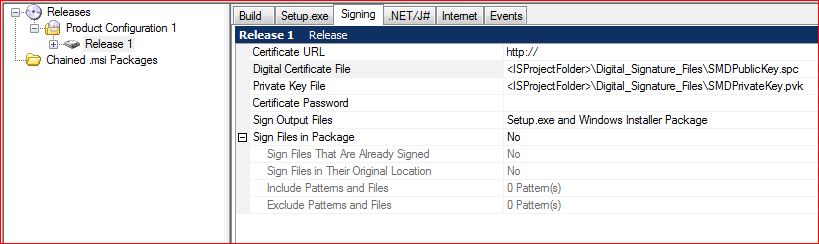 Media --> Releases --> Release 1 --> Signing (TAB):