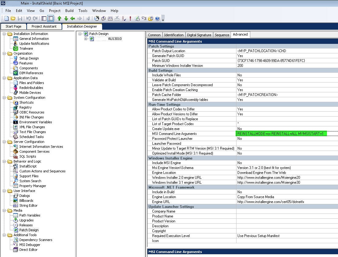 Die kundenspezifischen Einstellungen, welche wärend der Installation eingegeben werden können, sind in der Registry hinterlegt. Die Registryeinträge haben eine eigenen Komponente mit der Condition 'NOT Installed AND NOT PATCH'.