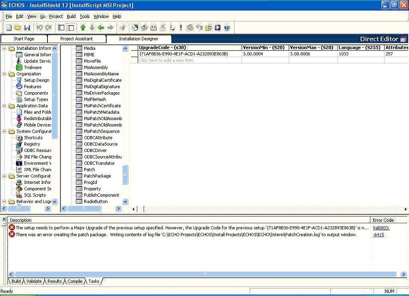 I am creating a patch where the latest setup is created with InstallShield 12 and the previous setup was created with InstallShield X. I am getting VAL0003 error: "the Upgrade Code for the previous setup '{...}' is not in the upgrade table." When I look in the upgrade table the Upgrade Code is in the table.